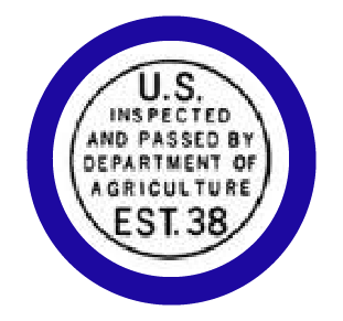 Inspection mark on raw meat from beef, pork, lamb, or goat.