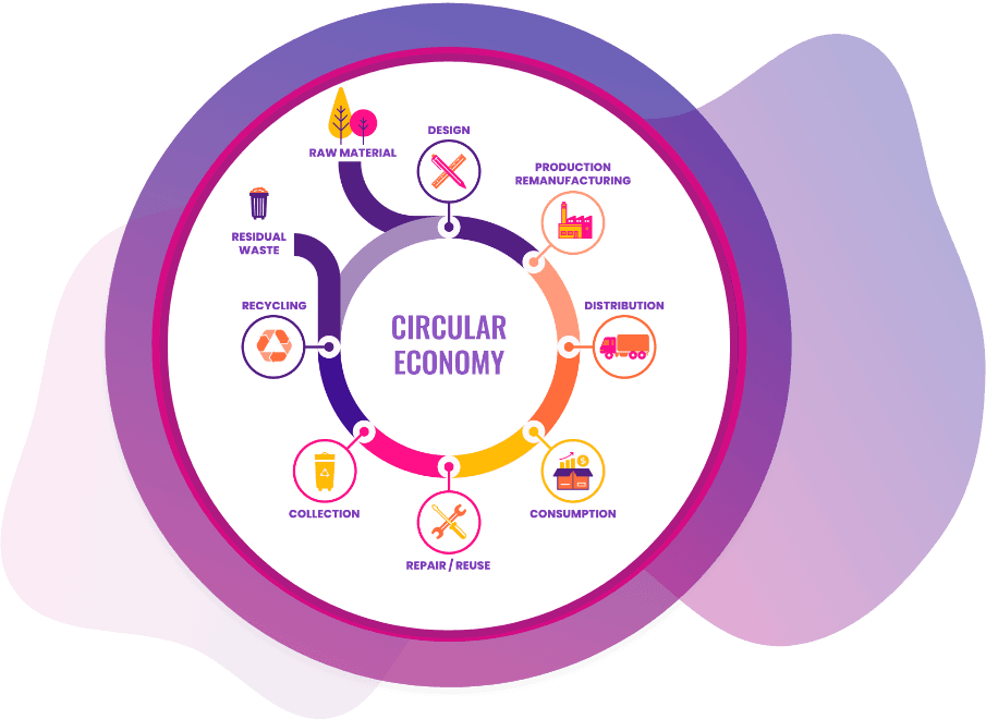 A circular economy aims to minimize waste and maximize resource consumption by keeping materials, particularly packaging materials and plastic packaging, in use for extended periods of time (instead of using raw materials for every package or pouch.) This is done via strategies like reusing, recycling initiatives, and regeneration. At its core, the circular economy focuses on creating a closed loop system where materials are circulated and regenerated via innovative recycling systems, reducing reliance on using virgin materials and minimizing the environmental impact of packaging materials.