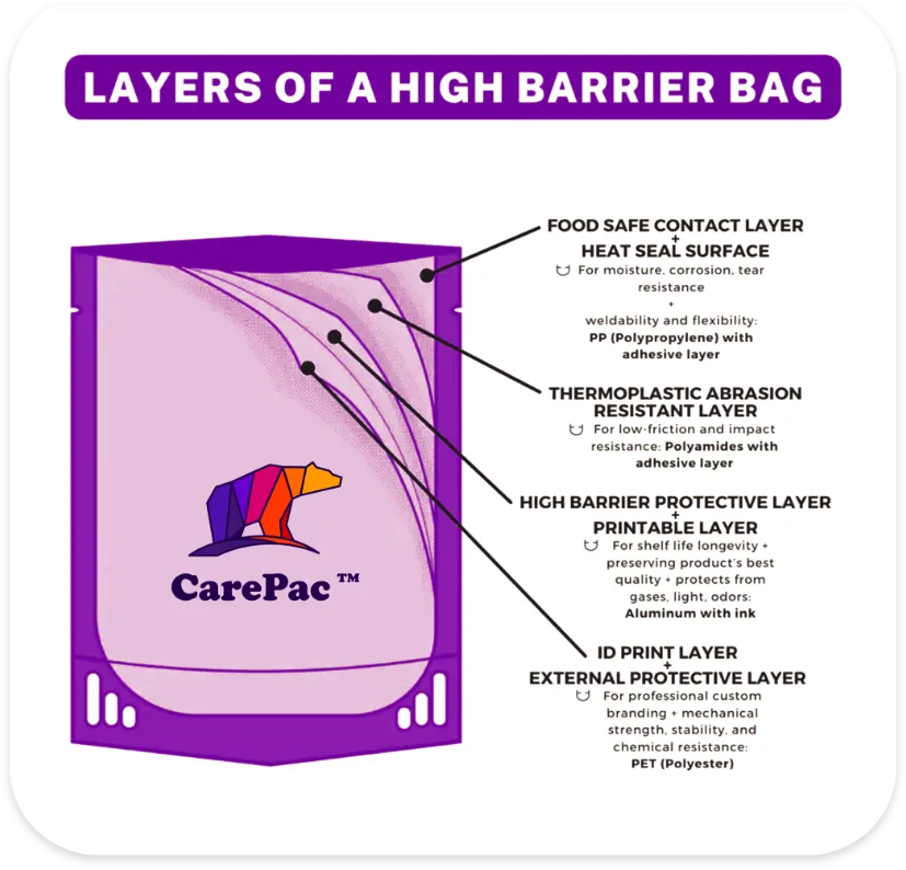 The best packaging for food safety should have strong barrier properties. Materials like PER, HHDPE, and PP can enhance food safety while providing you with plenty of customization options that will help your product stand out on the shelves.