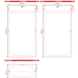 - Bleeds: Generally, ¼” bleed Required at top and bottom of bag. Unless Trim cut or reverse over trims are employed, (speak with your sales associate).